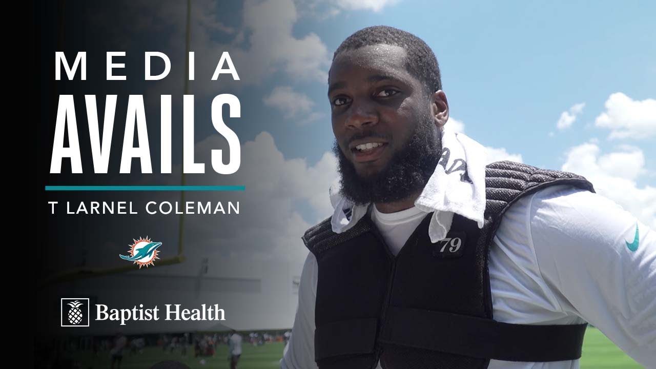 Tackle Larnel Coleman meets with the media following Miami Dolphins Training Camp at Baptist Health South Florida Training Complex on August 16, 2022. Subscribe: #MiamiDolphins #NFL For more Dolphins content: Like us on Facebook: Follow us on TikTok: Follow us on Twitter: Follow us on Instagram: Follow us on Reddit: Get the app:
